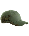 100% brushed cotton twill; Structured front; Pre-curved visor; Hook and Loop backstrap; Detailed embroidered wildlife scene on right side; Dri Duck embossed leather patch left of back vent;