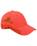 100% polyester; Structured front; Pre-curved visor; Hook and Loop backstrap; Detailed embroidered wildlife scene on right side; Dri Duck embossed leather patch left of back vent;